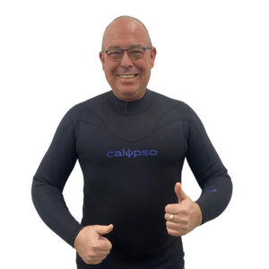 חולצת נאופרן שרוול ארוך של חברת CALYPSO בעובי 2 מ״מ, עשויה מחומר עמיד במי ים ובשמש.