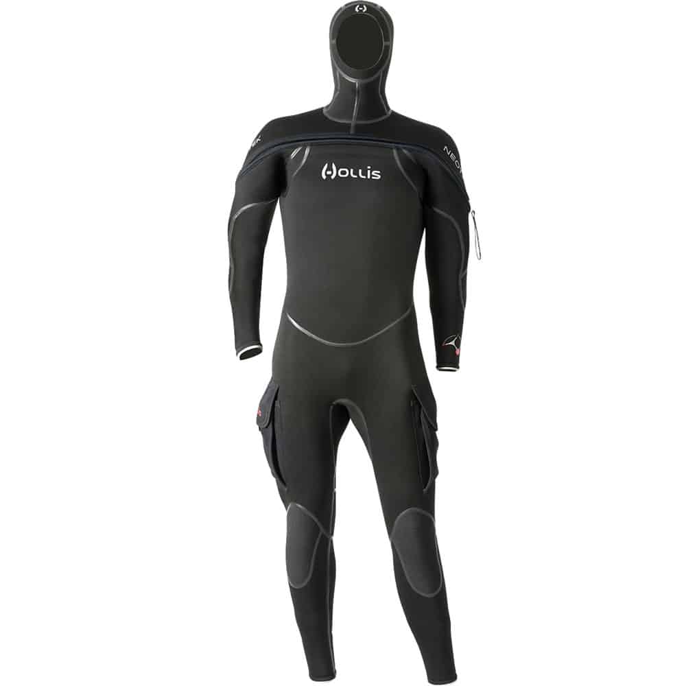 החליפה עשויה ניאופרן בעובי 8/7/6 מ״מ, עמיד לדחיסה, ומשולבת בבטנה פנימית ייחודית של Hollis בשם ThermaSkin.